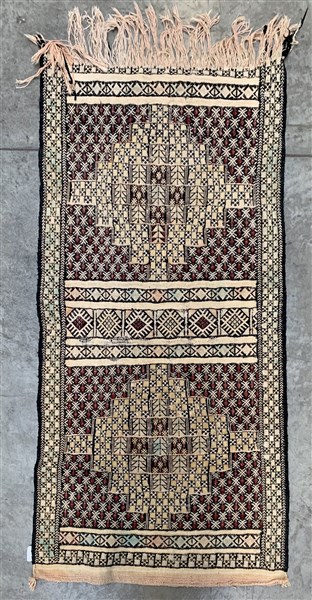 Tappeto Kilim Djia djin, Marocco, inizio secolo XX. Decoro con due medaglioni b