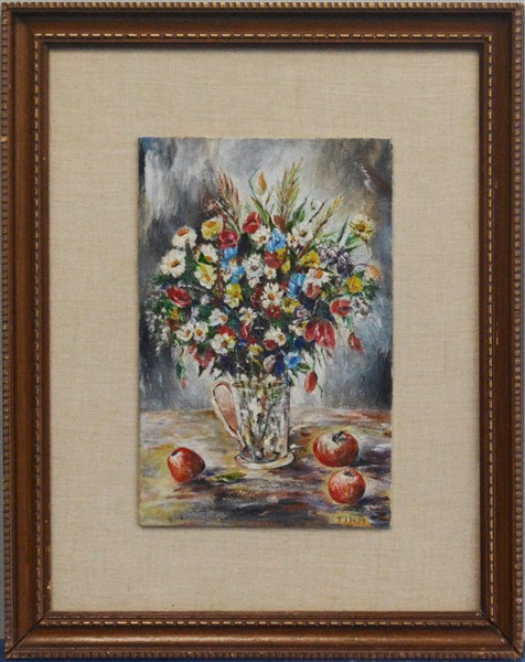 “Vaso con fiori” olio su tavoletta (cm 30 x19) firmato in basso a destra "TINA"