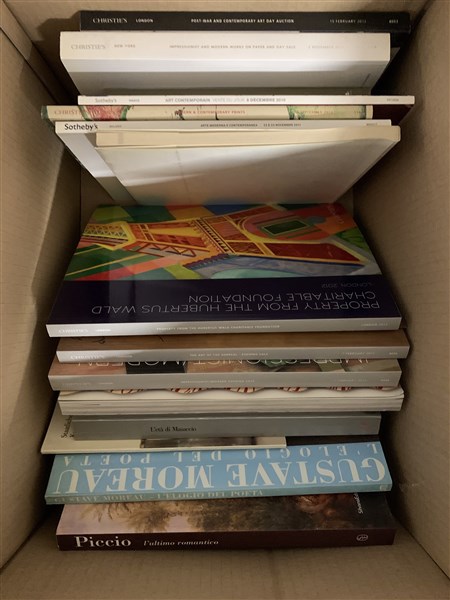 Cartone contenente alcuni cataloghi e pubblicazioni d'arte
