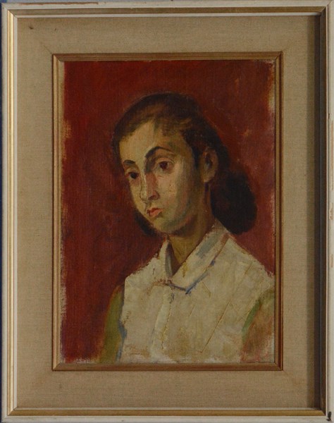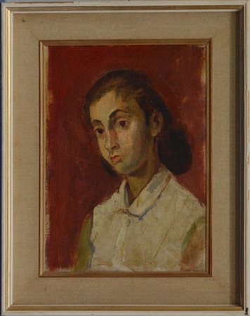 Ignoto "Ritratto di ragazza" olio su cartone telato (cm 45x33) In cornice (dife