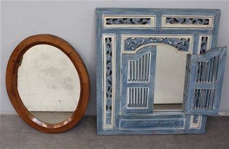 Lotto di due specchi di diversa forma e manifattura (cm 58,5x72 e 80x90) (difetti)
