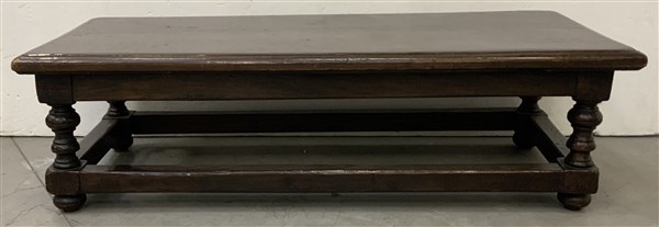 Tavolino da salotto con gambe tornite riunite da traverse (cm 126x36x55)