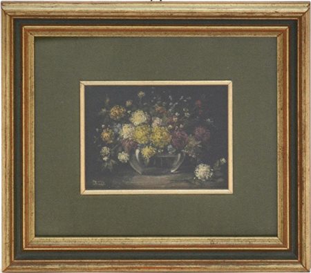 P. Bozzo "Vaso di fiori" olio su compensato (cm 9x12) Firmato in basso a sinistr