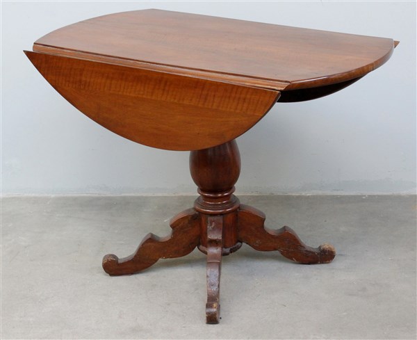 Tavolo ad alette con gamba centrale a colonna tornita terminante a quattro pied