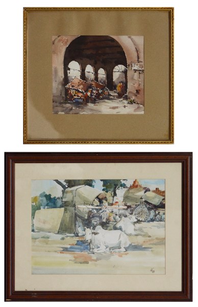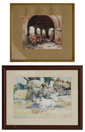 Lotto di due acquerelli di autori, soggetti e misure diverse. In cornici