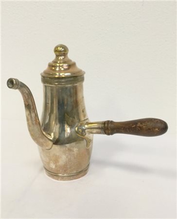 Caffettiera in metallo argentato a corpo liscio con manico in legno (h cm 27) (difetti)