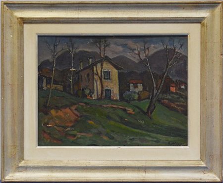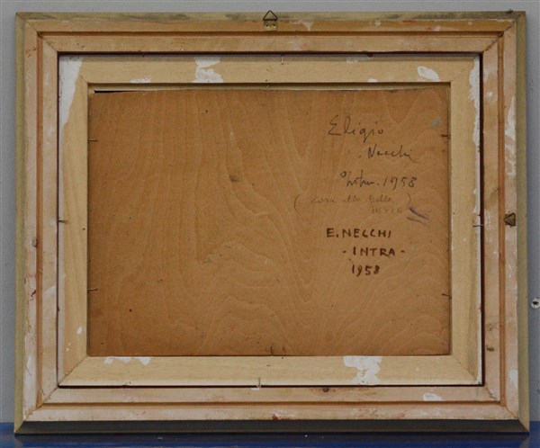Eligio Necchi "Intra" olio su compensato (cm 30x40) Firmato e datato 1958 in bas