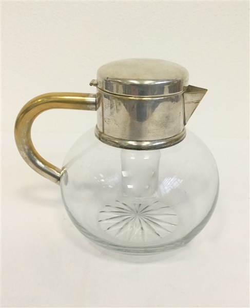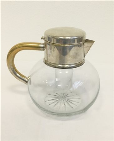 Brocca in metallo argentato e vetro con portaghiaccio (h cm 22) (difetti)