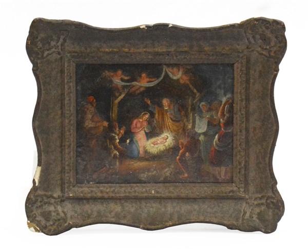 Ignoto "Natività" antico dipinto ad olio su tavola (cm 12,5x17). In cornice (d