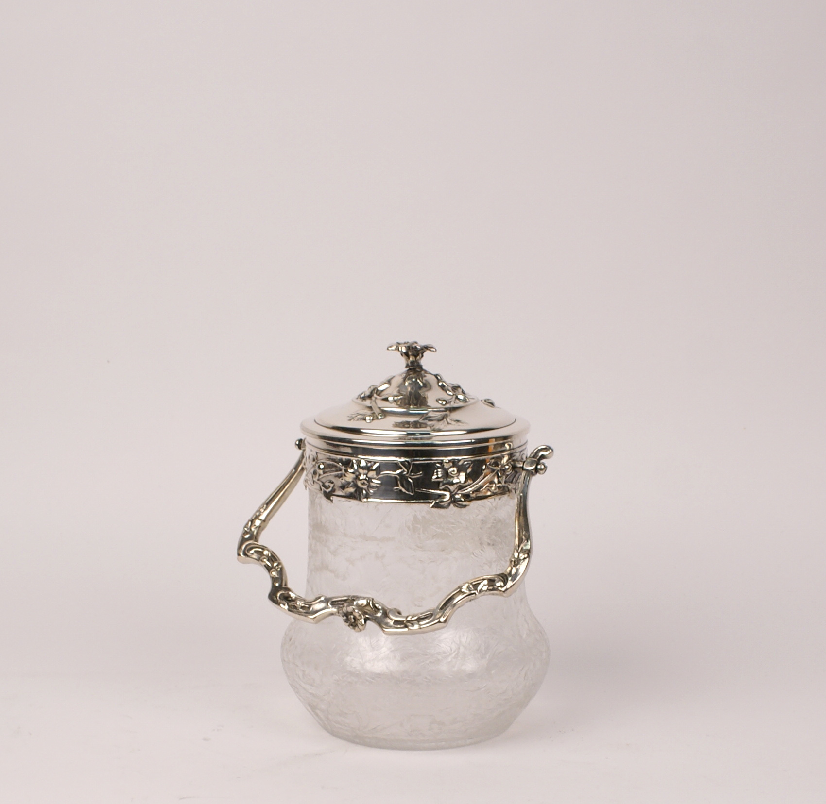 BISCOTTIERA IN VETRO SATINATO E METALLO Ercuis Parigi vecchia manifattura h. 23 cm.