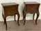 Coppia di comodini di forma mossa a due cassetti lastronati in radica, decorati
