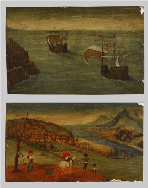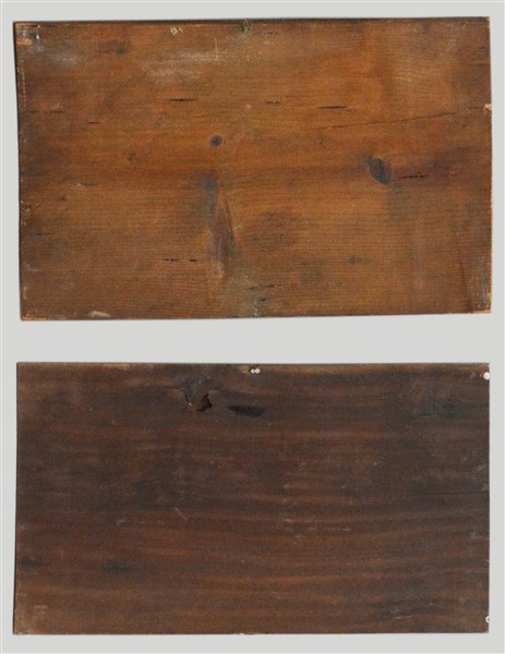 Lotto di due dipinti ad olio su tavola raffiguranti "Paesaggi" (cm 37x65 e 41x65) Firmati e datati in basso a sinistra (difetti)