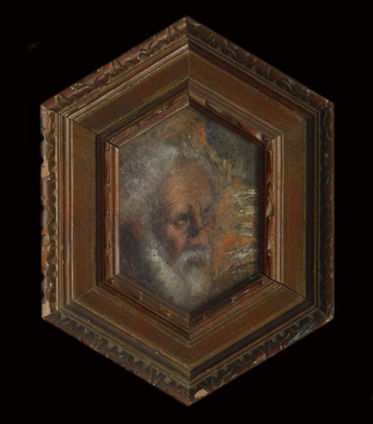 Ignoto "Volto virile" antico frammento ad olio su tela (cm 20x14). In cornice