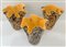 Lotto di tre vasi a fazzoletto in vetro opaco policromo con interno giallo (h c
