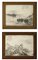 Coppia di disegni su carta raffiguranti paesaggi e recanti iscrizioni, in corni