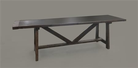 Antico tavolo ''fratino'' in legno di rovere con sostegni raccordati al centro