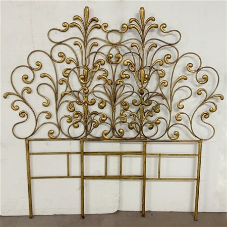 Coppia di testate da letto in metallo dorato decorato a volute (cm 110x153) (difetti)