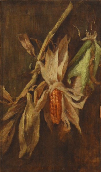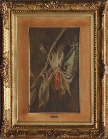 Ignoto,"Pannocchie" olio su tela (cm 60x35) Siglato GS in basso a destra. In co