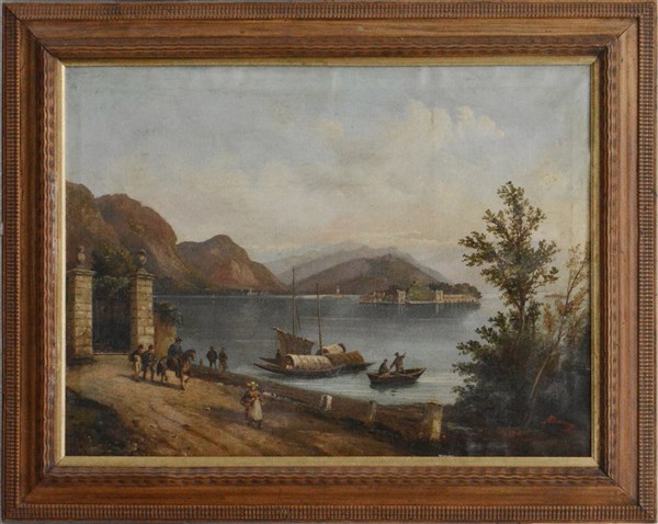 A. Dovera "Scorcio del Lago Maggiore con l'isola Bella" olio su tela (cm 60x80) Firmato in basso a destra. In cornice