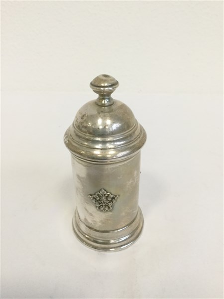 Macinapepe in argento decorato con fregi in rilievo (h cm 34) (difetti)