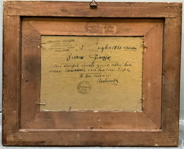 "Gli amanti" olio su masonite (cm 16.5x20.5) Firmato in basso a destra. In cornice (difetti)