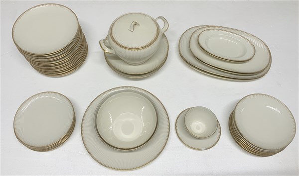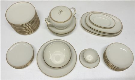 Manifattura Thomas, parte di servizio di piatti composto da una zuppiera con coperchio, sei piatti da portata ovali, due tondi, due insalatiere, una salsiera e due alzate portafrutta, sedici piatti piani, otto piatti fondi e sette piatti da dessert (difetti)