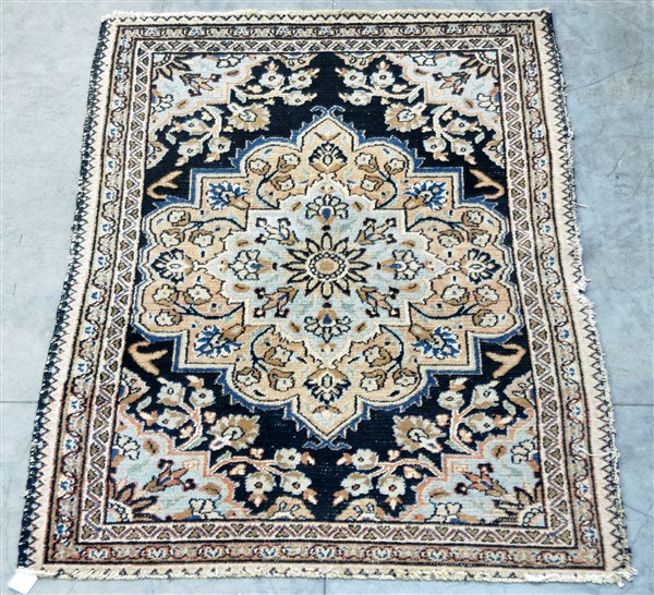 Tappeto Dorosh, Persia, secolo XX, decorato a motivi floreali e medaglione centrale nei toni del blu, azzurro e salmone (cm 178x117) (lievi difetti)