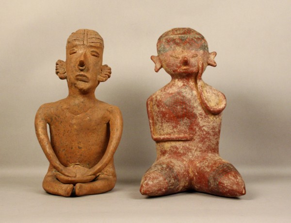 Firmato, datato. Due antiche sculture colombiane in terracotta. Mis. Alt. cm. 29 ca.