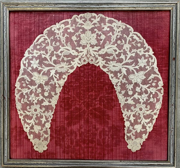 Colletto in pizzo Valencienne, con tulle e cordoncini applicati del secolo XIX. In cornice