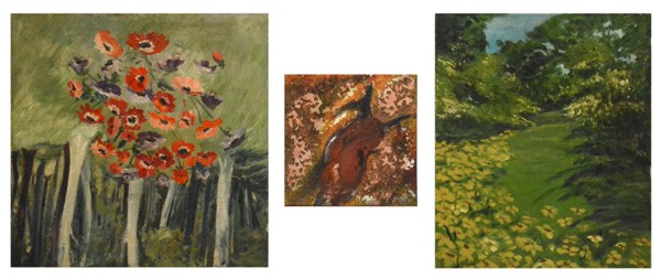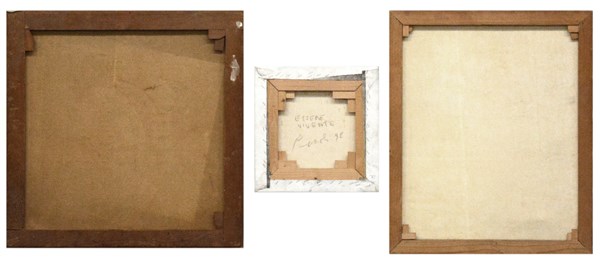 Lotto composto da un piccolo dipinto, olio su tela di Stefano Peroli (cm 31x31)unito a due dipinti ad olio su tela non firmati, di misure diverse (difetti)