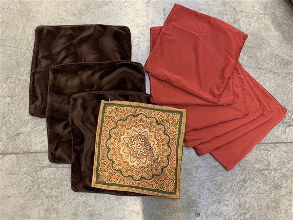 Lotto composto da federe per cuscini di fogge e dimensioni differenti tra cui una federa decorata con motivo Kashmir stampato.