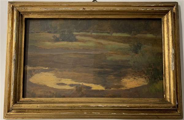 "Paesaggio" olio su tavola (cm 15x25) Al retro: cartiglio con autentica della sorella. In cornice