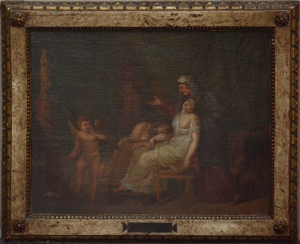 Ignoto del secolo XIX "Scena mitologia" olio su tela (cm 40x45 circa). In cornice