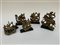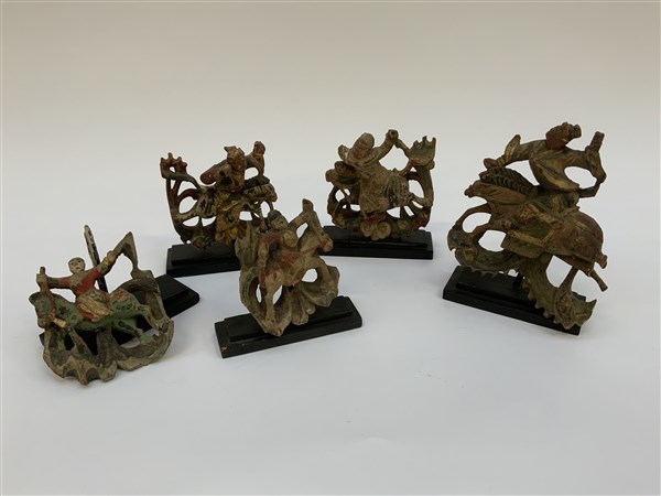 Arte cinese, cinque sculture raffiguranti figure a cavallo in legno intagliato