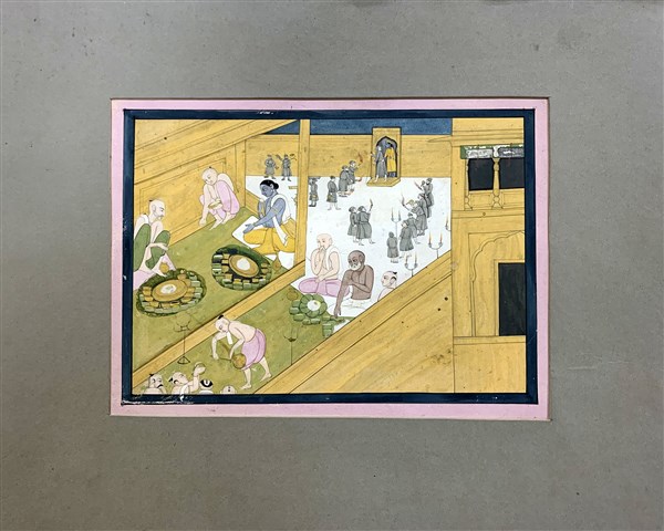 Lotto 1470 | Arte indiana "Scena conviviale" tecnica mista su cartoncino (23x30,5 cm.)