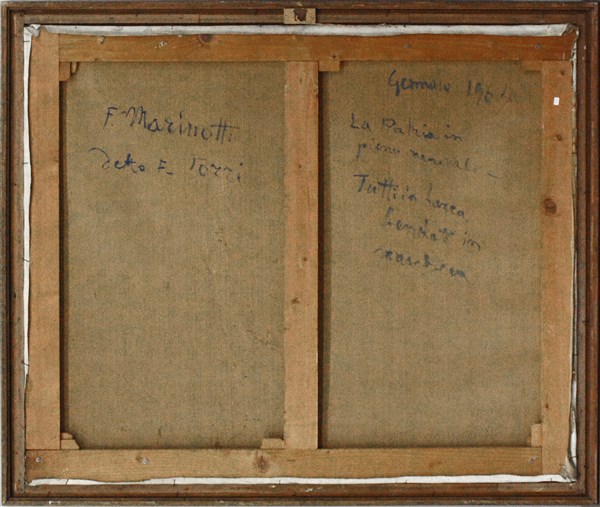 firmato in basso a sinistra; firmato F. Marinotti, titolato e datato al retro. In cornice (difetti)