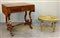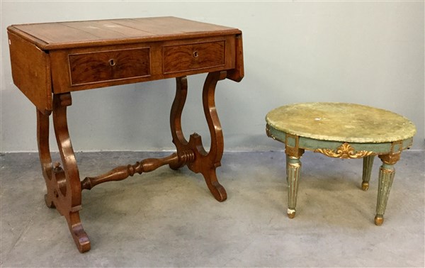 Lotto composto da un tavolino da salotto con base laccata e uno scrittoietto ad alette con gambe a lira. Secolo XIX (difetti)