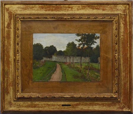 "Strada di paese" olio su tavola (cm 25x36) Firmato in basso a sinistra. In cornice