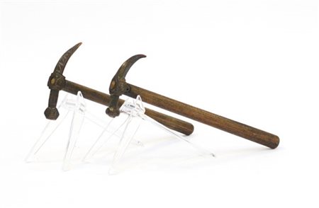 Lotto composto da due antichi martelli da geologo con manici in legno (difetti)