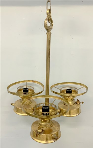 Lotto composto da un lampadario a gas e una piantana in metallo. Epoche, materiali e misure diverse (difetti)