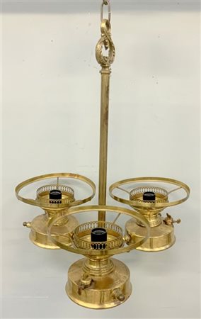 Lotto composto da un lampadario a gas e una piantana in metallo. Epoche, materi