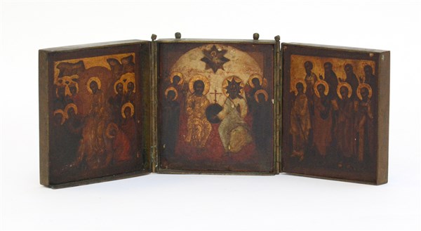 Icona tripartita da viaggio dipinta a olio su tavola con Scene della Vita di Cr