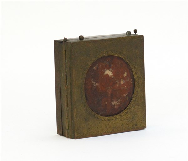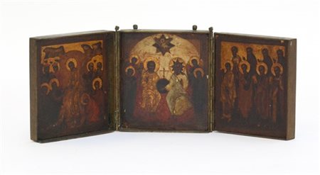 Icona tripartita da viaggio dipinta a olio su tavola con Scene della Vita di Cristo ( cm totali 37x14) (difetti)