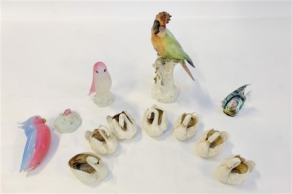 Lotto composto da undici oggetti in materiali diversi raffiguranti animali (difetti)