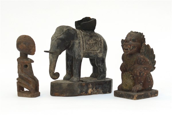 Manifatture diverse, lotto composto da tre sculture lignee di epoche differenti (difetti)