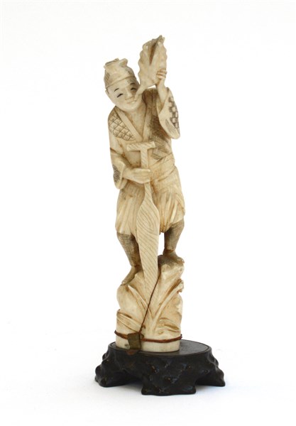 Okimono in avorio raffigurante figura virile con tartaruga Giappone, periodo Me