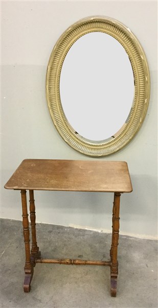 Lotto composto da un tavolino con gambe tornite ed una specchiera ovale in legn