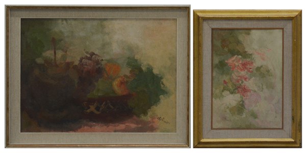 Lotto composto da due dipinti ad olio su tela raffiguranti "fiori e frutti". Firme indecifrate (misure diverse)