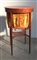 Tavolino portacucito di forma ovale con fasce e gambe filettate in legno chiaro