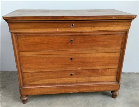 Comò a tre cassetti e mezzo con piedi anteriori torniti. Secolo XIX (cm 118x96x60) (difetti)